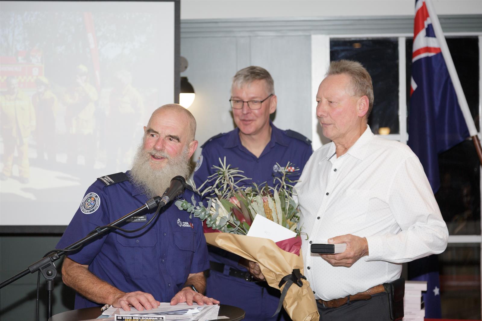 Acting Commander Matt Baber also presented Pete Rae and John Roberts with National Emergency Medals for their service in the Black Summer fires. He also presented service awards to more than 30 other members of the brigade.