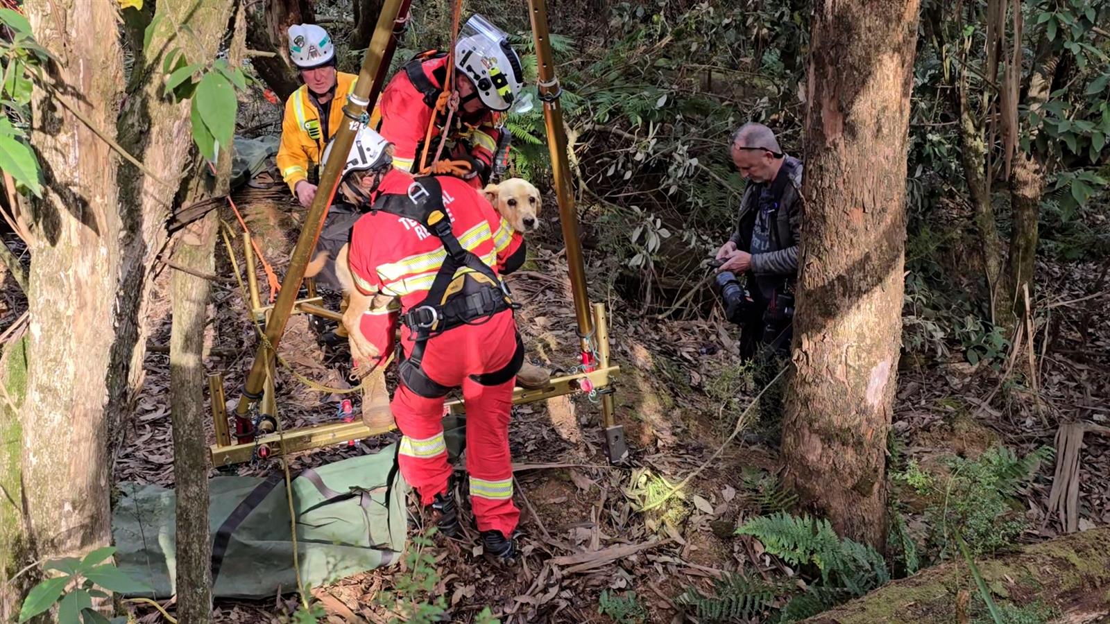 A team effort in the west today (2 June) saw local Trentham Fire Brigade members work with CFA’s Oscar 1 rescue team to safely rescue a dog from an eight-metre-deep mine shaft.