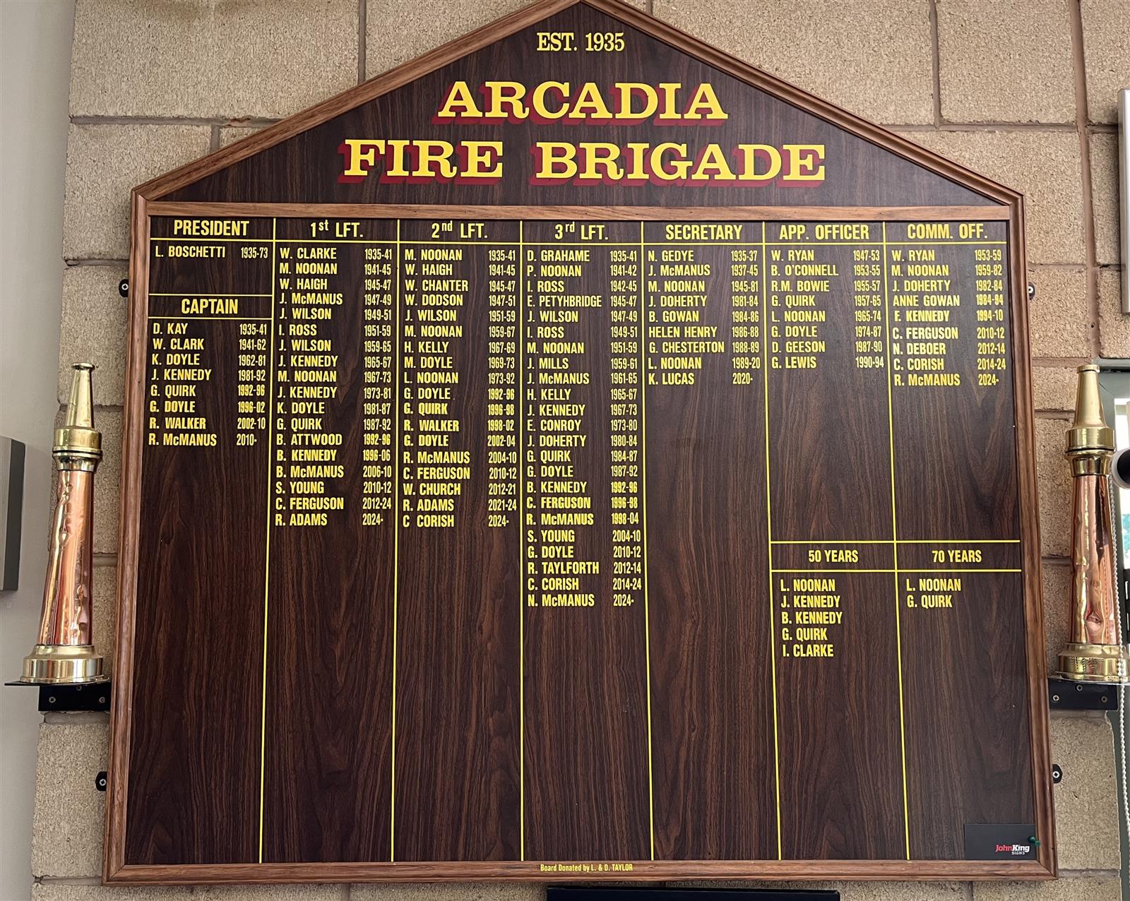 Arcadia Fire Brigade recently celebrated its 90th year of service to the community at the community centre/fire station complex in Arcadia.