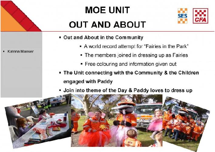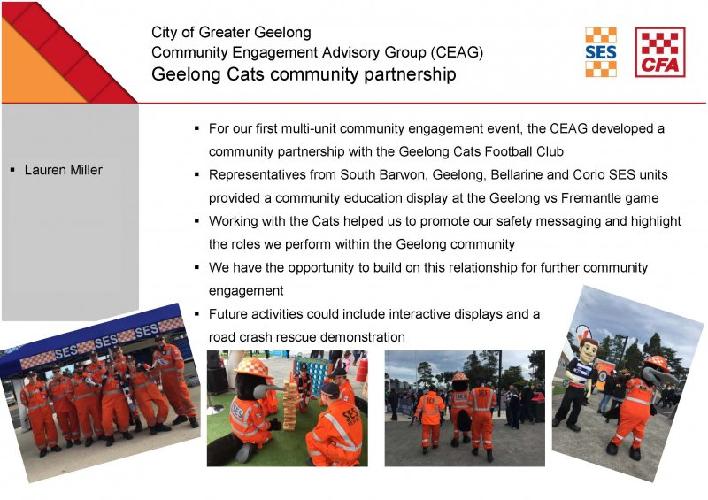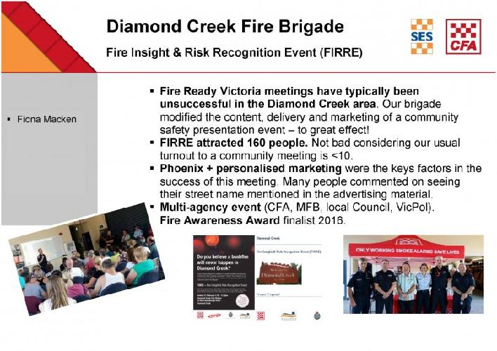 CFA brigades and SES units were invited to submit local engagement initiative to display at each of the regional forums this year.