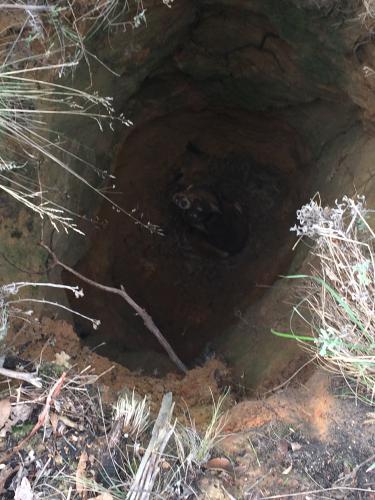 CFA crews were called to the incident at Speary's Road in Dereel at 10.09 this morning (Wednesday 10/7) to rescue the kelpie that had fallen 4.5 meters down a mine-shaft.