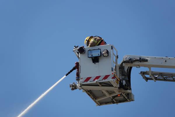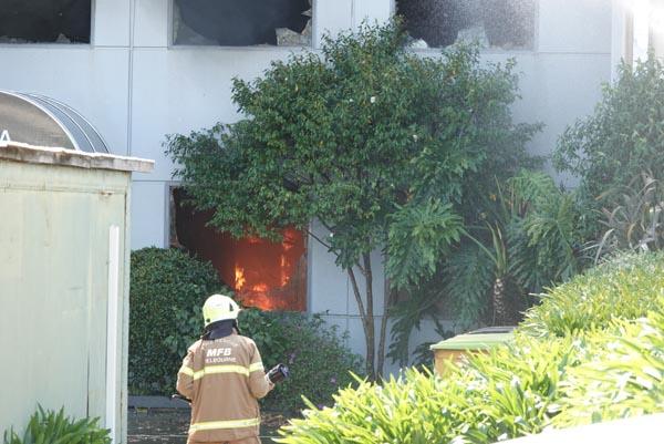 More than 20 appliances from CFA and MFB responded to the fire, including a ladder platform appliance.