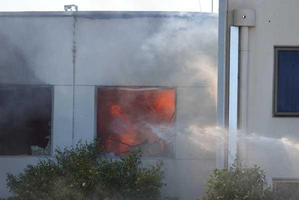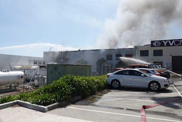 The factory is 30m x 70m with gas bottles believed to be inside.