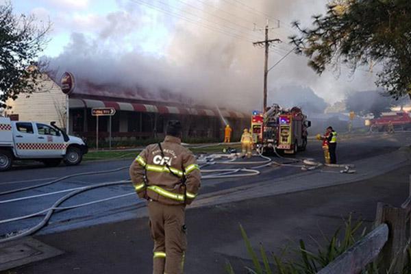 Sixteen CFA trucks, including a aerial appliance, attended the scene. Firefighters notified and evacuated people from neighbouring properties, and were able to contain the fire to the hotel building.
