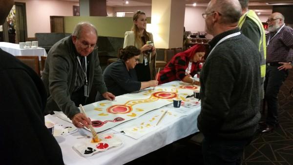 And so the painting is titled “Sharing knowledge and engaging each other” as this is what it represents said Jida “engaging and sharing knowledge in a safe and culturally appropriate way”. And over 30 CFA and SES members contributed to the painting, even if shyly and without prior painting knowledge. The final mural will be framed and hung most likely at CFA HQ.