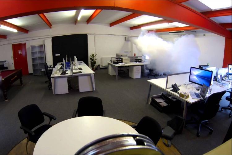 The triggers for the device to activate are a break-in, when a door is opened, or when movement is detected by sensors in the building. Most products are harmless, using a glycol vapour to produce the ‘smoke’. A similar substance is used in theatres and discos. They leave no residue and are safe for humans, animals, food, clothing, furnishings, computers and electrical equipment.