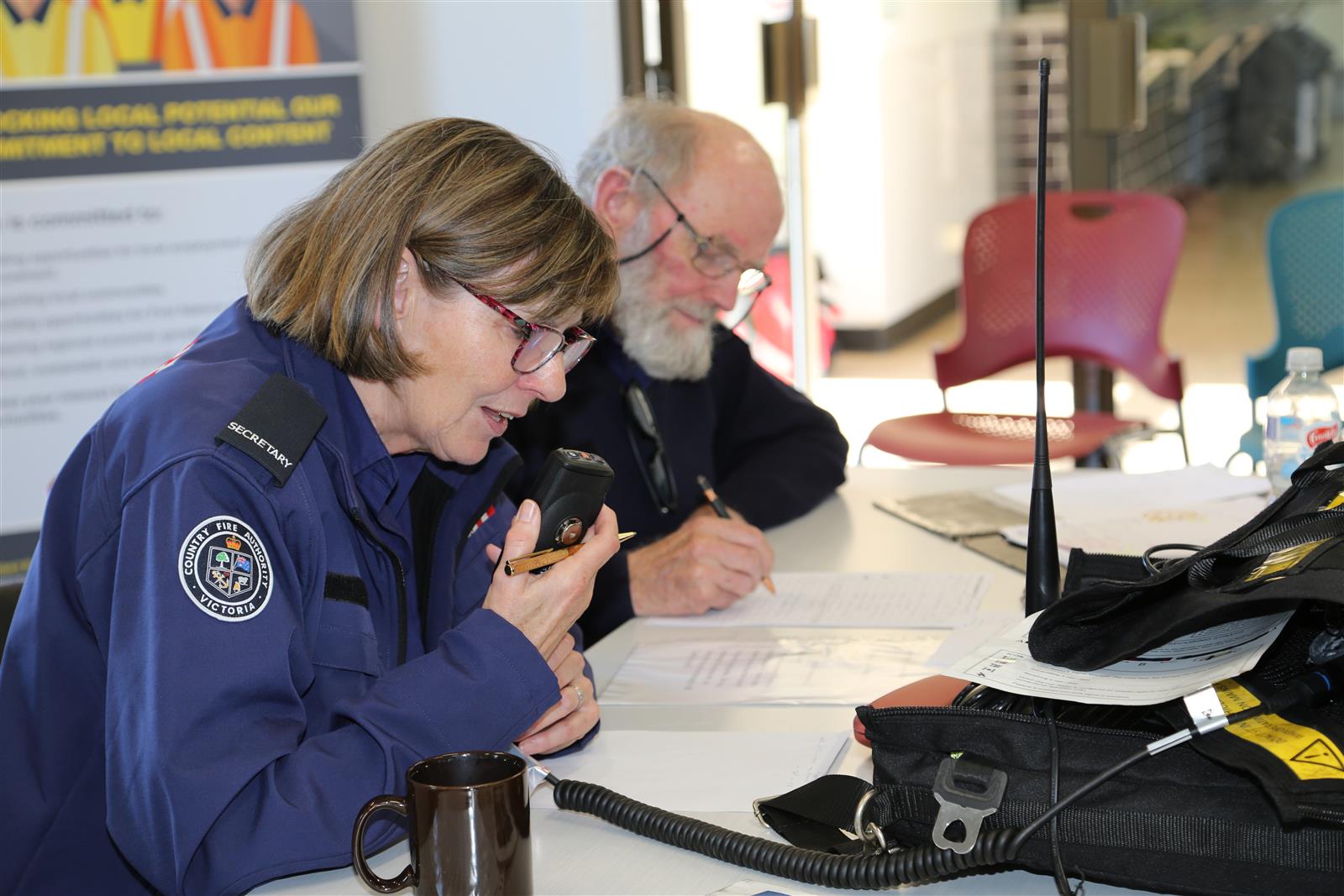 Dumbalk Secretary Chris Oliver and Pound Creek member Allan Archbold acted as the radio control centre during the Group Exercise.