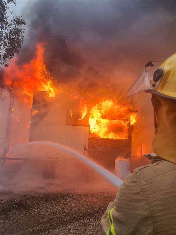 “Our crew was first on scene and found the structure fully alight, with heavy smoke swirling throughout the area. Once suppression started, we identified what appeared to be a lithium-ion battery pack near the front of the building,” Bruce said.