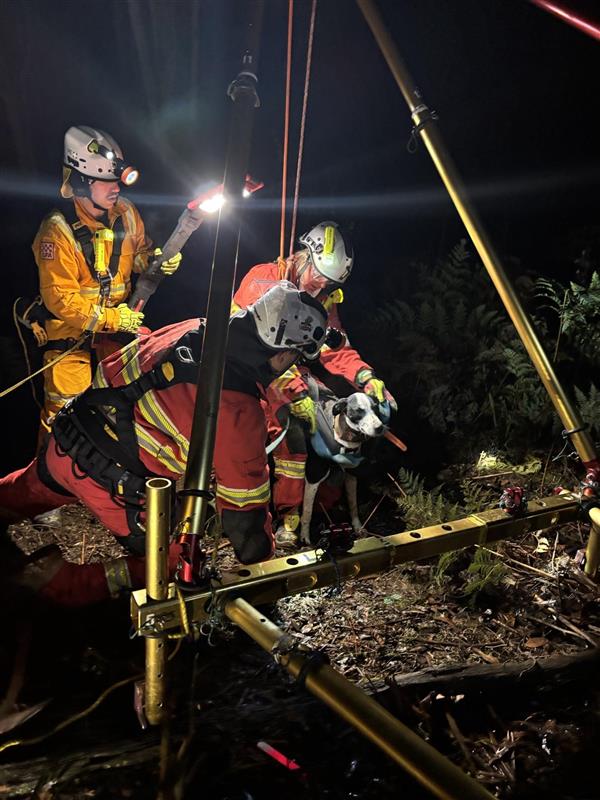 A beloved dog who went missing for two days has been safely rescued after falling down an abandoned mine shaft in the Wombat State Forest in Langdons Hill.