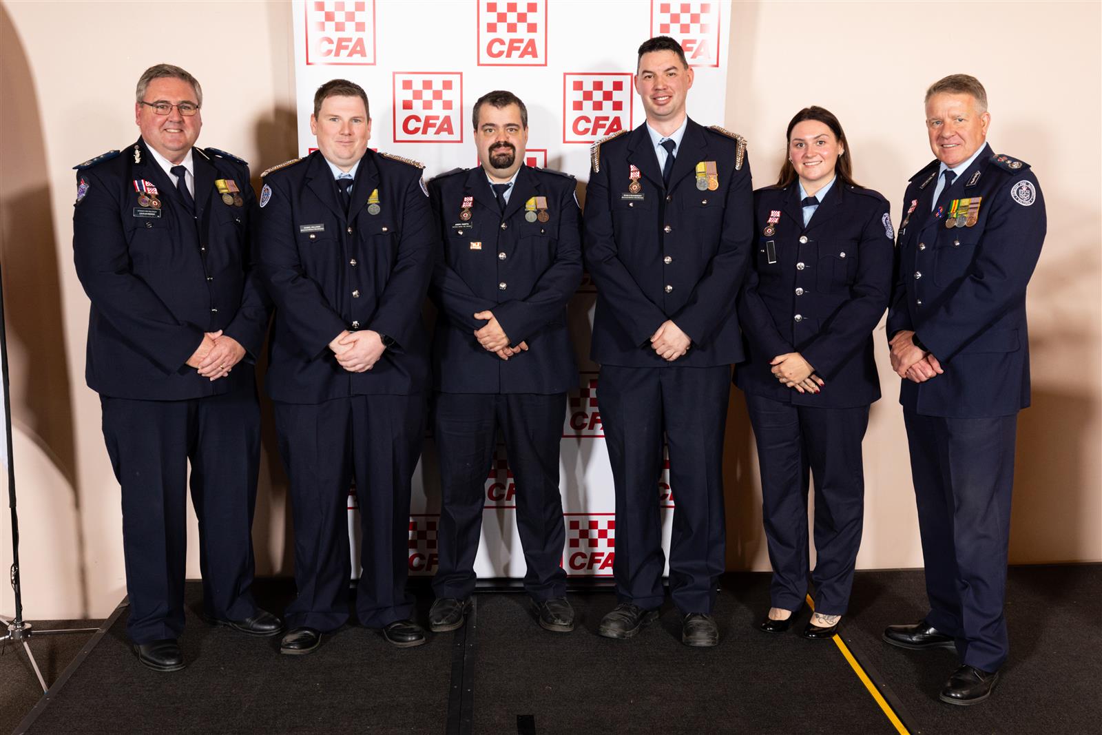 Ballan Fire Brigade members with ACFO Lachlan Redman and Acting Chief Officer Garry Cook. Credit: Uniform Photography