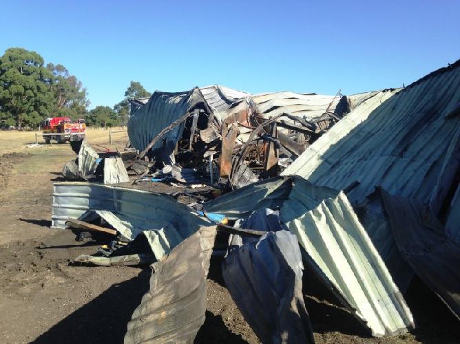 Although the shed was a total loss, attending crews were able to prevent the fire from spreading to adjoining buildings or vegetation. The shed was estimated to have over $1 million of equipment stored inside. Due to the excellent fire suppression work done, the insurance company were still able to identify the contents, which will assist in the owner's claim.