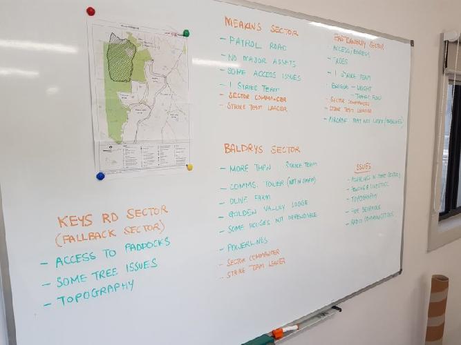 As the skies cleared, everyone met back at Flinders Fire Station for lunch and spent the afternoon discussing strategies and tactics for each sector and the challenges unique to each area, which included some in-depth discussions on limited access to one sector due to a narrow bridge and tree hazards overhanging a one lane road that lead to the bridge.