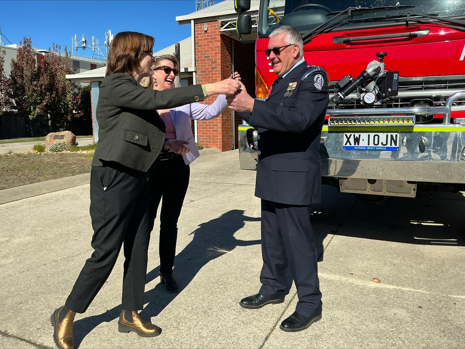 Woodend Fire Brigade has welcomed a new medium tanker and rehab unit vehicle to their engine bay, celebrating the official handover with brigade members and local dignitaries.